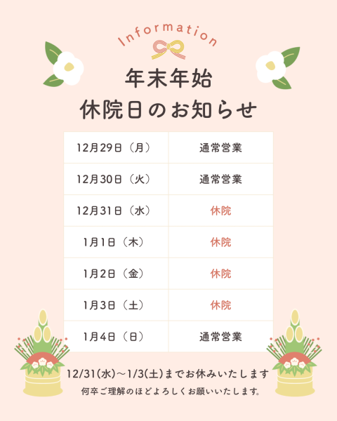 お身体を整えて、なるべく良い状態で来年を迎えましょう✨